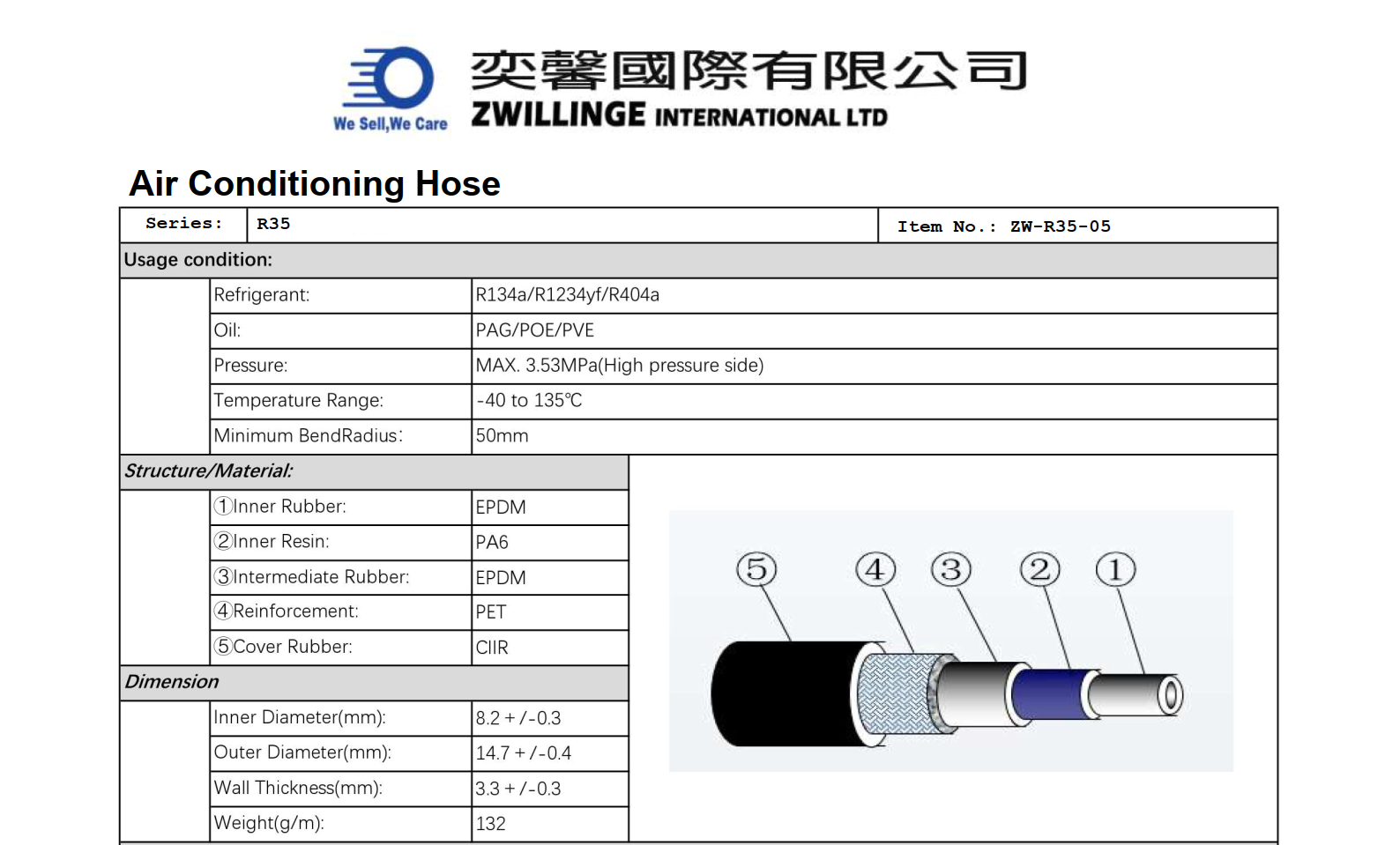 致力於R134a/R1234yf/R404a/J2064冷媒管的研發、生產和銷售,零部件配套、售後零部件供應膠管及總成產品。